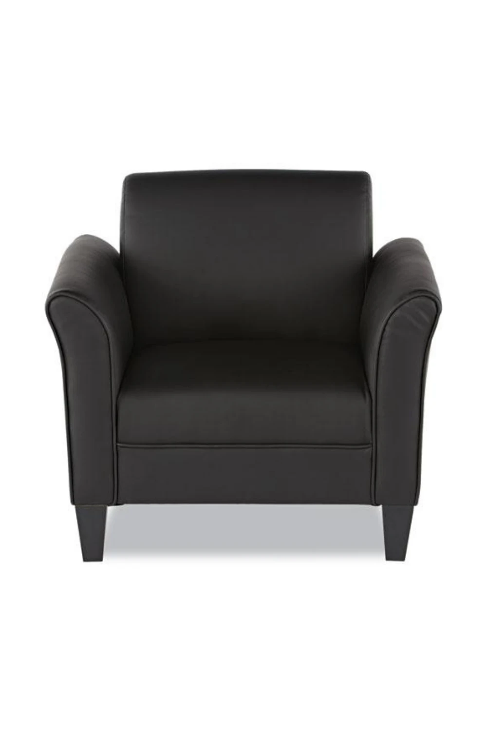 Classic, simple lines complement any lounge or reception environment. Soft touch leather upholstery for comfort and style. Black wood pyramid legs. Recommended Applications: Guest, Reception, Waiting Room & Lounge; Features & Functions: N/A; Arms Included: Yes; Back Width Minimum: N/A.