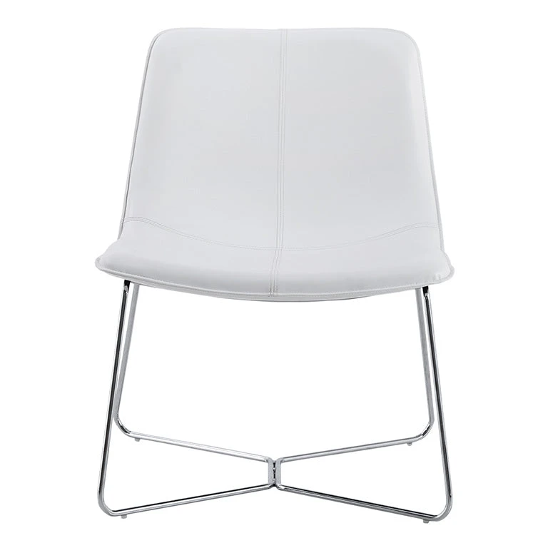 Invite a fresh, new look to your home with the Grayson Accent Chair. Attractive, padded scoop seat paired with steel powder-coated frame creates a modern, contemporary vibe. Trimmed with striking, baseball stitching detail, the easy to care for faux leather looks and feels like soft, natural grain, leather. The contemporary padded scoop design is exceedingly comfortable and will complement a variety of design aesthetics. A perfect pairing for the dining room, home office and living room. Simple assembly.