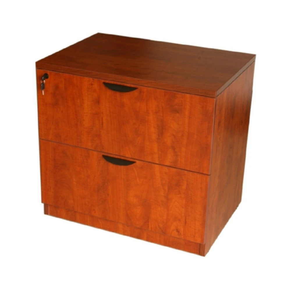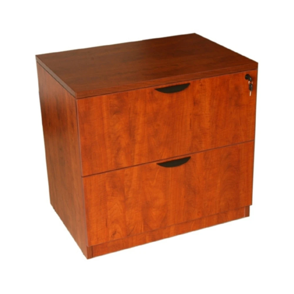 Boss Office Products N112-C is a 2-Drawer Lateral File finished in rich, lustrous Cherry. It comes fully assembled and can be used either free-standing or under a desk shell. It is constructed of thermal fused melamine with 3mm PVC edge banding, which offers excellent durability and scratch resistance. It comes with a 1-inch thick top that provides a sturdy surface that will require little maintenance. It is also equipped with leveling glides that offer exceptional balance on different floor surfaces.