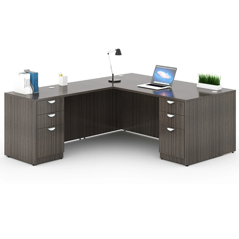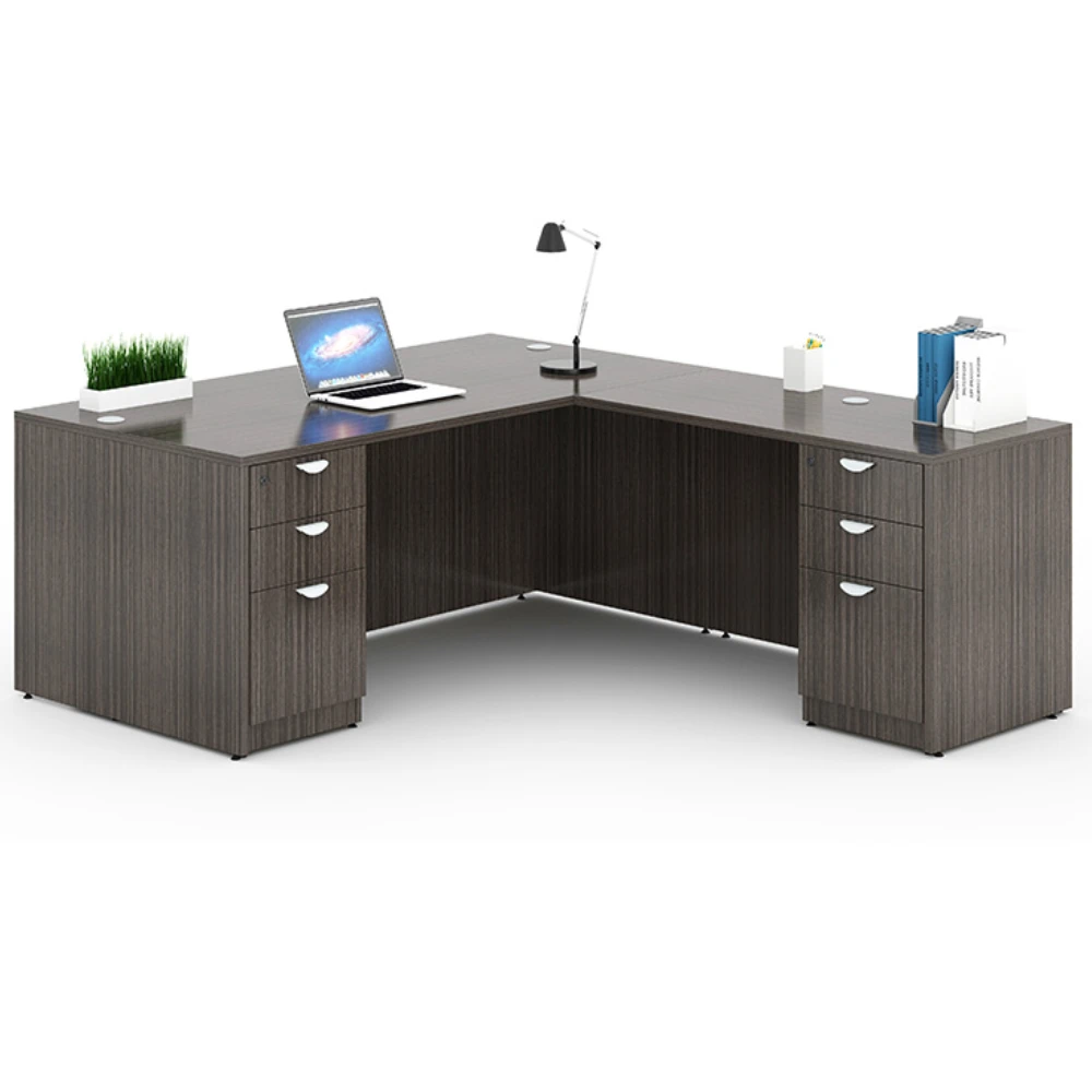 Boss Holland Series 66″ Or 71″ Executive L-Shape Corner Desk With Dual File Storage Pedestals, Driftwood