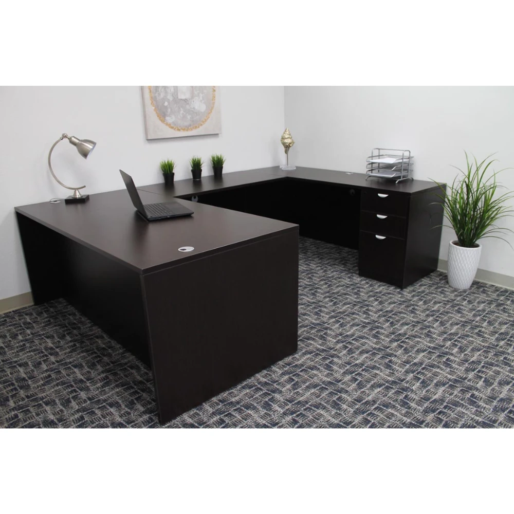 Boss Holland Series 66″ Or 71″ Executive U-Shape Desk With File Storage Pedestal, Mocha