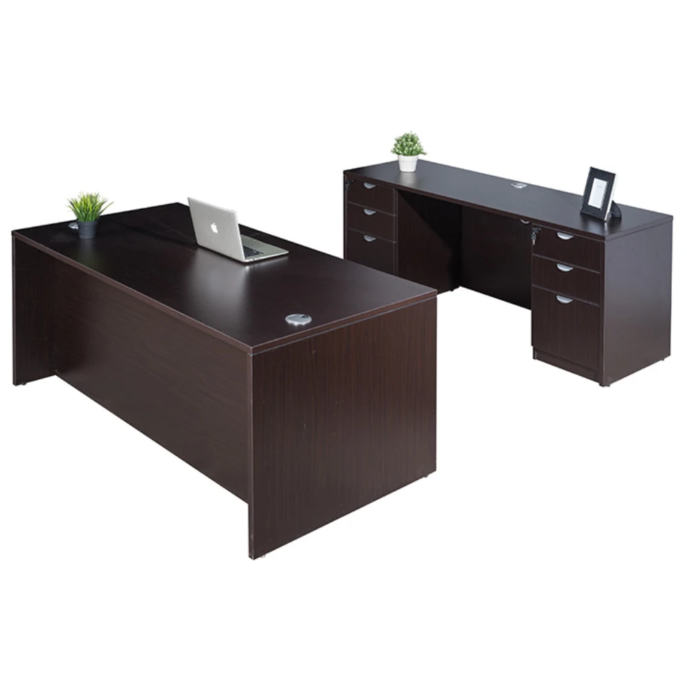 Boss Holland Series Office Suite, 66 Inch Desk And Credenza With Dual File Storage Pedestals, Mocha