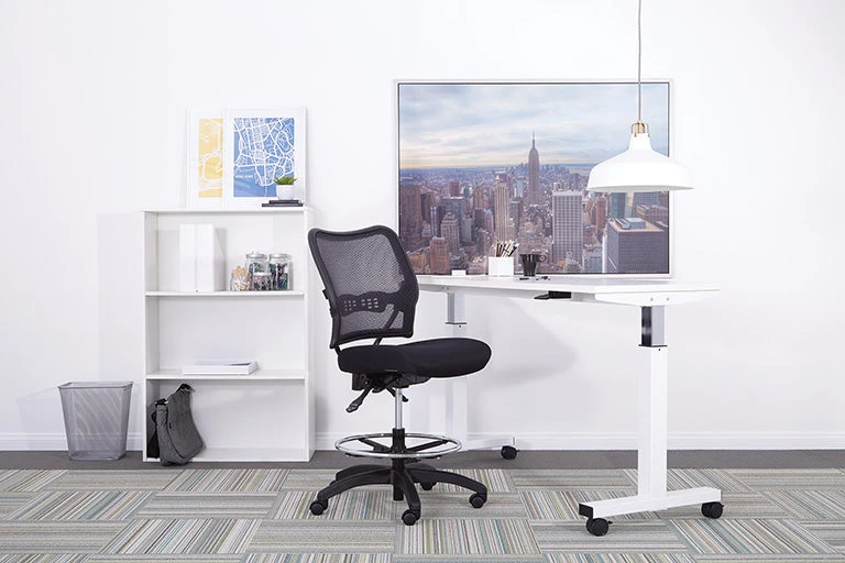 This contemporary mesh drafting chair features an Air Grid screen mesh backrest for maximum airflow and support.
