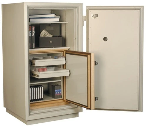 features an electronic lock standard, various shelf and drawer options, and five sizes to choose from. The safe is UL rated to maintain an interior temperature less than 125F and an interior relative humidity less than 80% for 1 hour according to the UL Class 125 specifications.