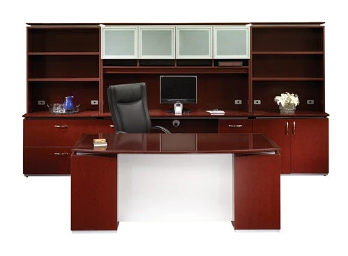 We just received our Maverick Sierra series Desks on the showroom floor. We have the Executive U Shape bowfront desk with Glass Door storage hutch and a beautiful High Gloss Pacific Cherry L Shape executive desk in the store. Maverick Desks are made locally in Southern California and meet all environmental regulations. Choose from 16 standard finishes like African Walnut, Cognac Cherry. Oak, Maple, Espresso, Java, Black, White and more. Visit the largest Maverick desk showroom in San Diego for free space planning and office design as well as professional delivery and installation.