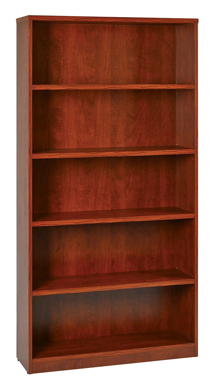 Keep books, binders and files neatly arranged in your home or office with Office Star 5-Shelf Multipurpose Bookcases. Constructed with commercial-grade thermally fused laminate and heavy-duty 1″ thick shelves with smooth, impact-resistant edges to ensure long life. Adjustable leg levelers balance bookcases on any floor. Includes 3 adjustable, 1 fixed and 1 bottom shelves. Optional extra shelf available. These easy-to-assemble, fashionable and functional bookcases are available in a variety of finishes and are ideal for all your storage needs.