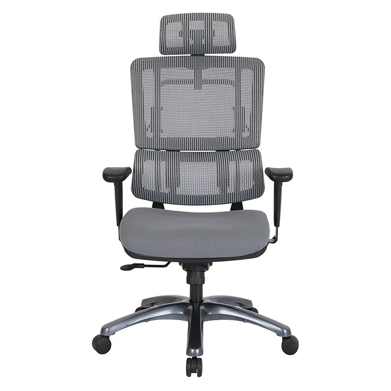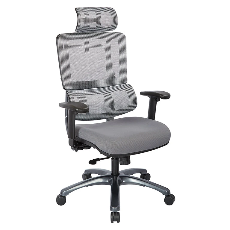 Pro Line II by Office Star Products VERTICAL GREY MESH BACK CHAIR WITH TITANIUM BASE WITH HEADREST – 99667THRS-5811