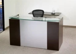 Office Source Cosmo Collection Glass Top Reception Desk – 48″W X 32″D – RCN4731