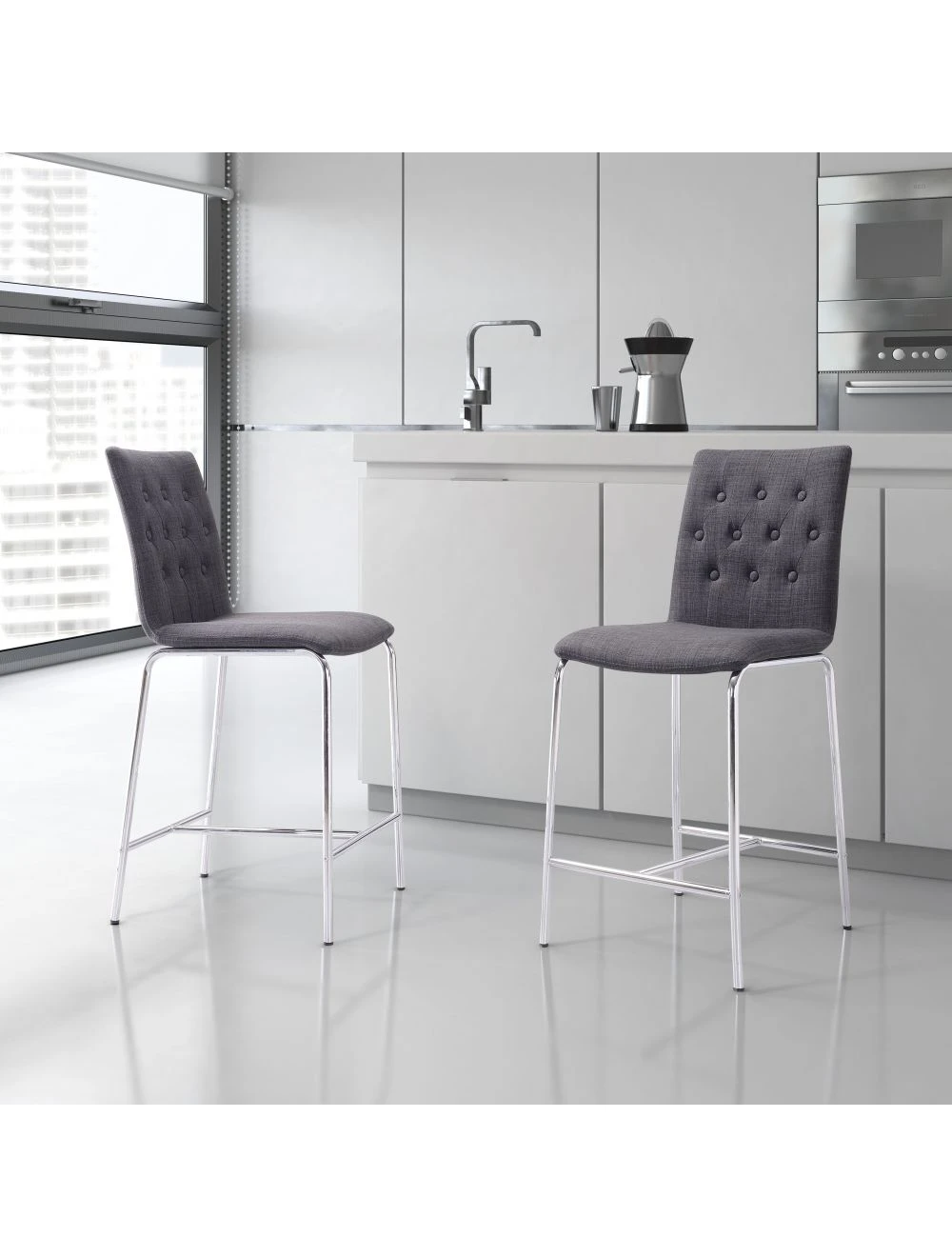 Light button tufting gives the Uppsala Counter Chair a sweetly vintage air. The chrome frame comes dressed in mod shades like tobacco, tangerine, graphite, or pea. Like something you’d find in an, I Dream of Jeannie episode.